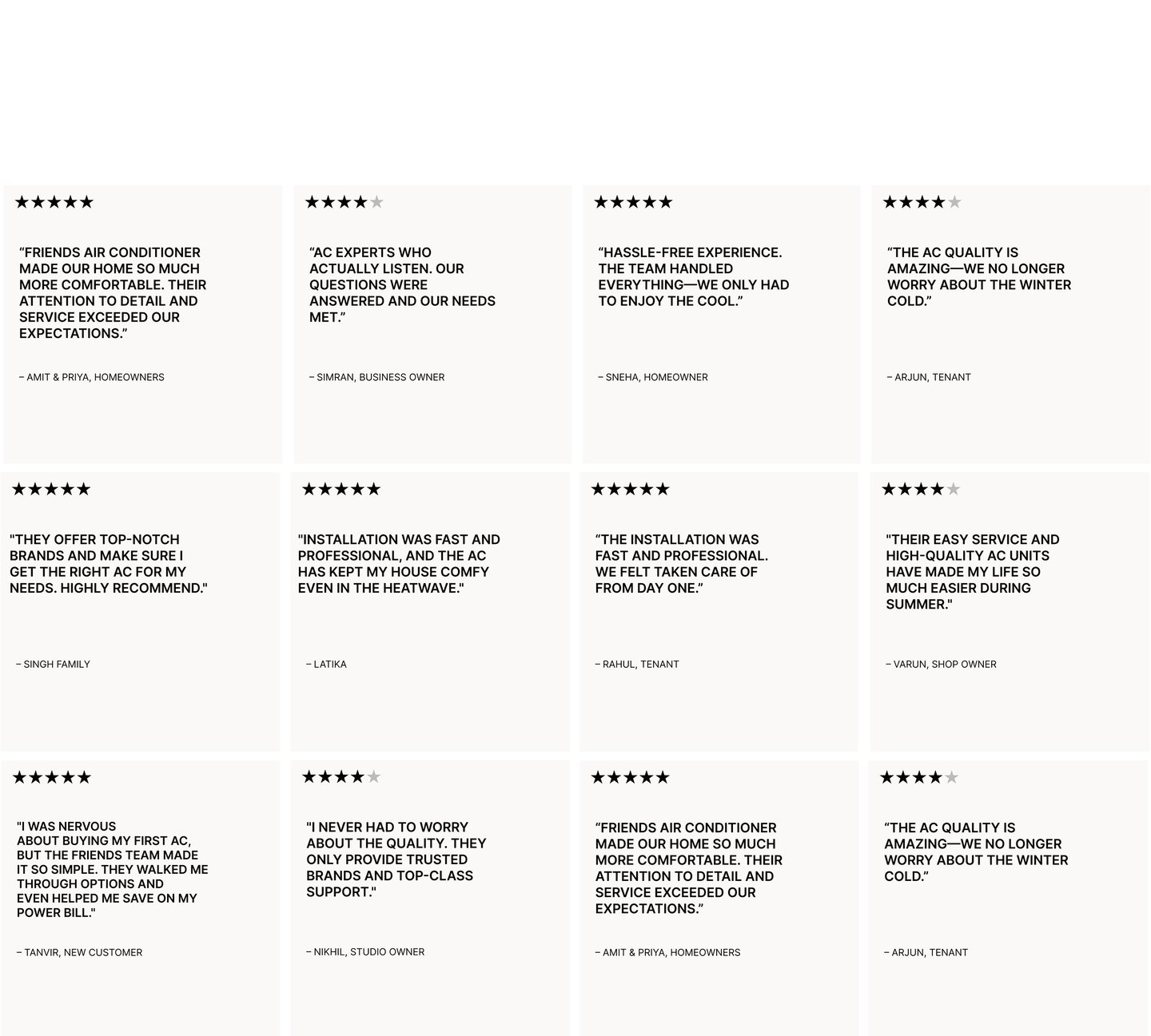 FRIENDS AIR CONDITIONER STANDS FOR TRUST, INTEGRITY, AND A PASSION FOR COOLING COMFORT. OUR MISSION IS TO SIMPLIFY YOUR EXPERIENCE WITH CLARITY AND CONFIDENCE, CREATING THE PERFECT CLIMATE FOR EVERY STAGE OF LIFE.